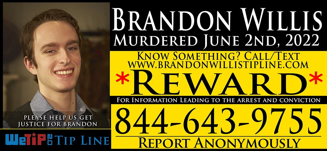 Scan the QR Code below or go to www.brandonwillistipline.com to report anything you might know.